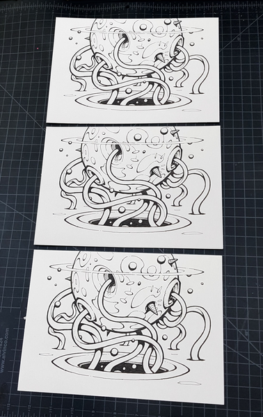Exquisite Corpse BOTTOM THICK #020 is a 6.7" x 9.4" hand-rendered ink on 300gsm Hannemuhle Britannia stock. LE3. Bottom segment. Signed & numbered, comes with stenciled COA.